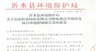 關于山東恒泰紡織有限公司年產3000噸預氧化纖維制品及5萬噸復合材料織造生產線項目(一期5萬噸復合材料織造生產線)環境影響報告表的批復